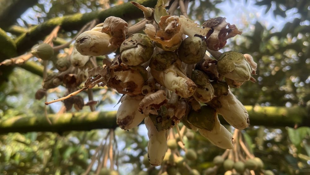 Một vườn sầu riêng mất hoa đồng nghĩa với mất cả vụ mùa. Thiệt hại không chỉ dừng lại ở năng suất mà còn ảnh hưởng đến chất lượng trái và khả năng tiêu thụ, đặc biệt với những vườn trồng theo hướng xuất khẩu.