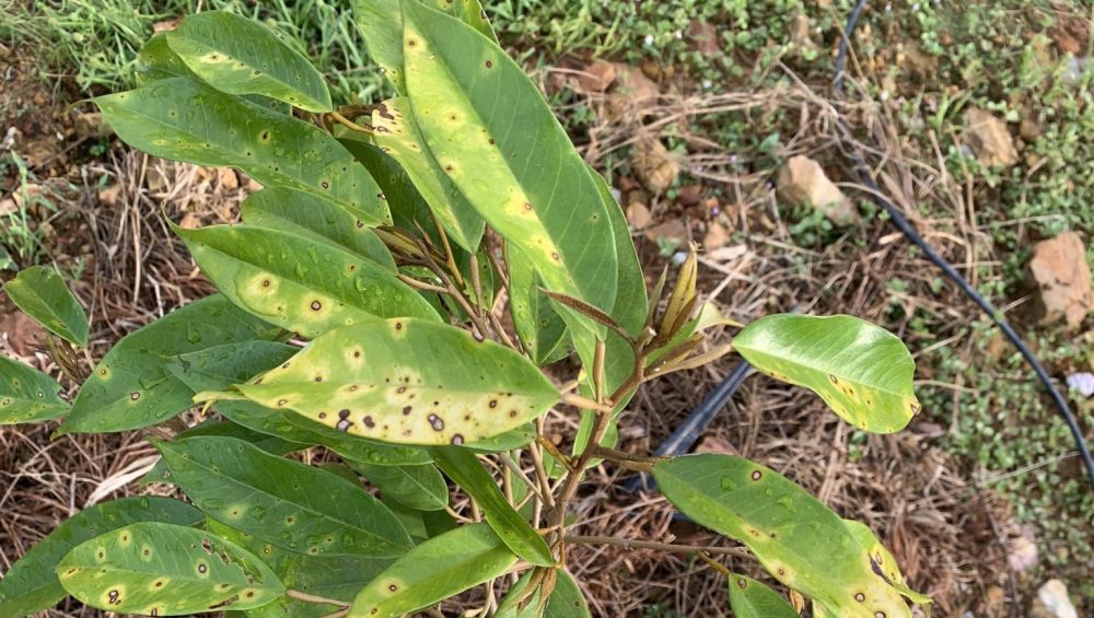 Tác nhân gây bệnh: Bệnh đốm mắt cua trên cây sầu riêng xuất phát từ nấm Colletotrichum zibethinum, một loại nấm có khả năng tấn công mạnh mẽ, làm suy yếu sức khỏe của cây, dẫn đến những thiệt hại đáng kể cho lá