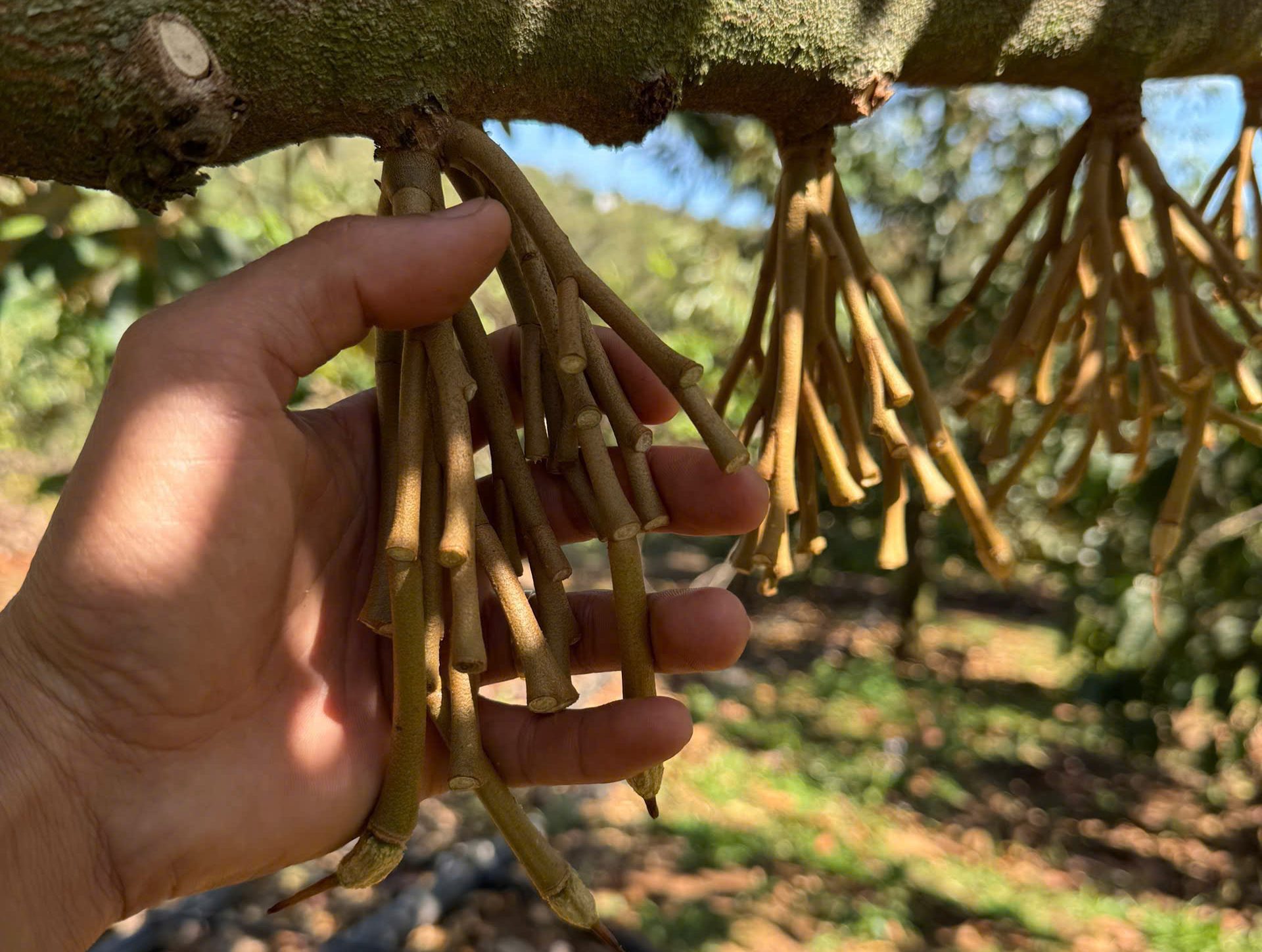 Tại nhiều vùng trồng sầu riêng như Đắk Lắk, Đắk Nông, Lâm Đồng, Tiền Giang, Bến Tre…, tình trạng mưa trái mùa, mưa liên tục nhiều ngày trong giai đoạn cây đang nuôi bông – nuôi trái non xảy ra ngày càng thường xuyên. Mỗi lần mưa kéo dài đều để lại những thiệt hại rõ rệt: bông bị thối nhũn, cuống trái giãn nở, nhựa cây bị loãng, cây rơi vào trạng thái “sốc nước”, dẫn đến rụng trụi bông và trái non.