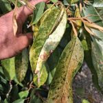 - Trái non bị chích hút: xuất hiện chấm nhỏ, quanh vết chích sậm màu, sau đó trái vàng và rụng sớm.