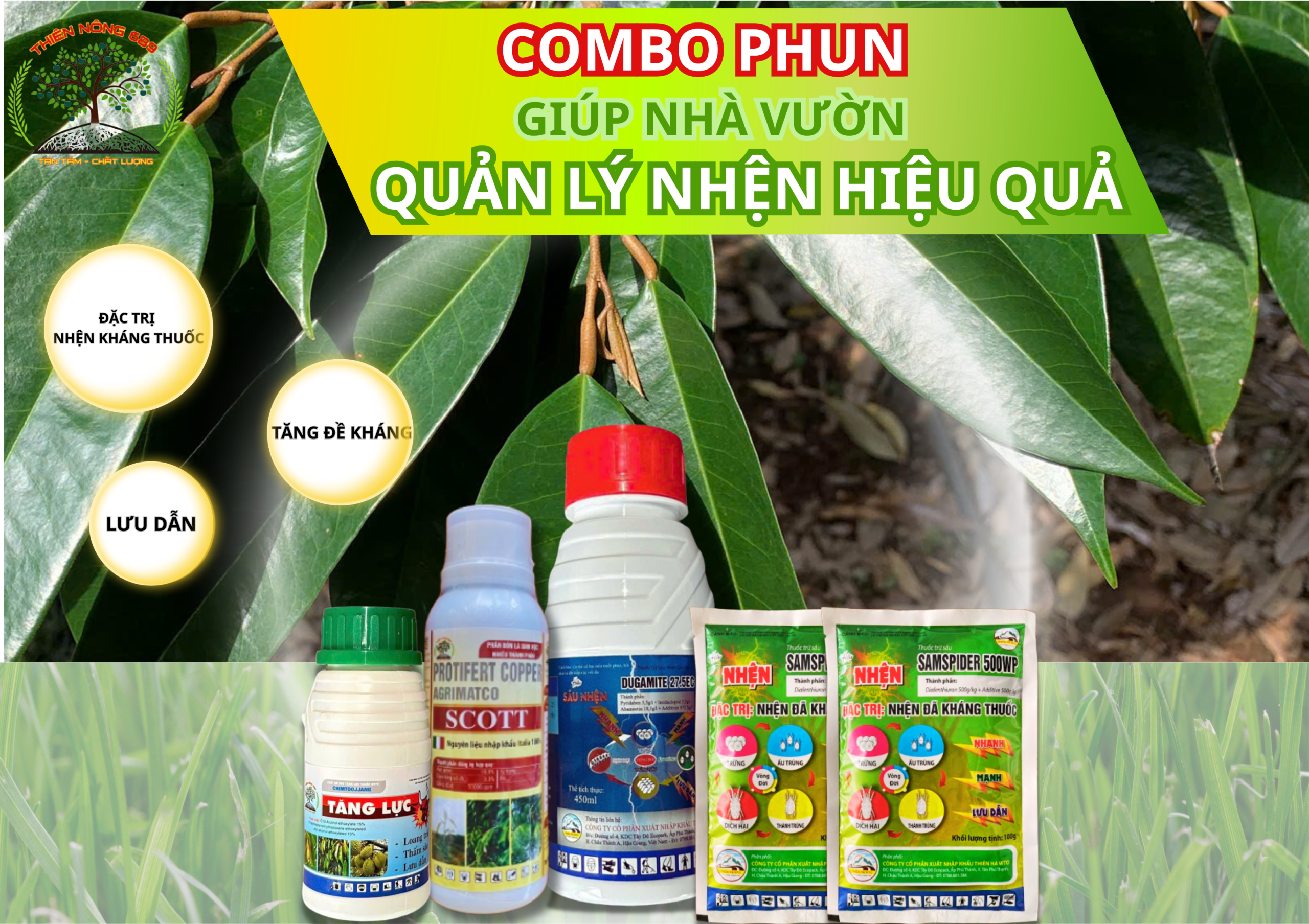 Lúc này, nếu bà con vẫn tiếp tục “giảm liều”, phun lại hoạt chất cũ hoặc phun đơn lẻ thì nhện sẽ ngày càng mạnh hơn. Cần chuyển sang phác đồ đặc trị nhện kháng thuốc với sự phối hợp nhiều hoạt chất + chất bám dính + chất thấm sâu.