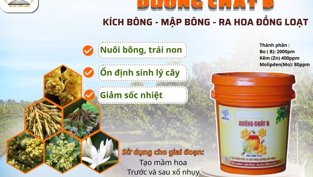 Xuất phát từ thực tế canh tác đó, DƯỠNG CHẤT B – phân bón vi lượng dạng tưới của Thiên Nông 689 đã được nghiên cứu và đưa vào sử dụng, trở thành sản phẩm được nhiều nhà vườn tin tưởng và sử dụng ổn định trong nhiều năm qua ở giai đoạn tạo mầm, nuôi bông và giữ trái non.